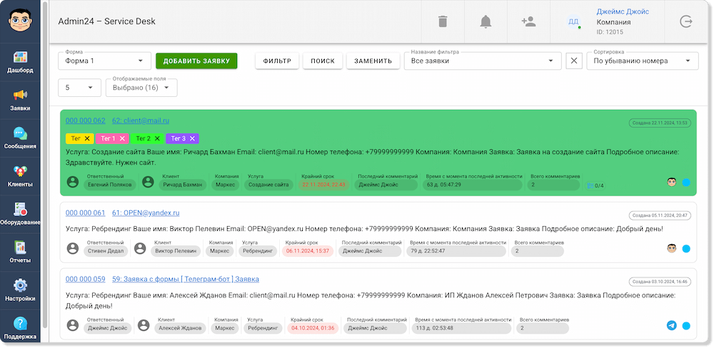 Admin24 — это система для учета и обработки заявок, которая помогает бизнесу автоматизировать работу клиентской и технической поддержки. С помощью Admin24 компании могут принимать обращения из разных источников, работать с ними в CRM-системе, отслеживать сроки выполнения заявок и анализировать эффективность работы сотрудников. Система входит в единый реестр российского ПО.
