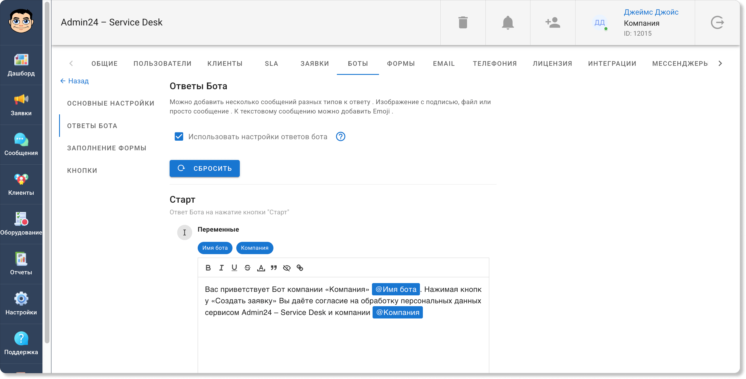 Автоматические ответы. Сервис-деск может отправлять автоответы клиентам, если сотрудник не оставил комментарий или не изменил статус заявки в течение выбранного времени.