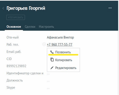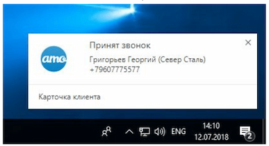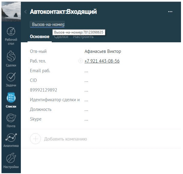 Всплывающая карточка клиента и автоматическое создание контакта при входящем и исходящем вызове;