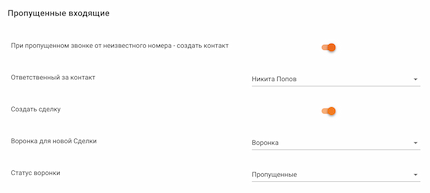 Автоматическое создание Сделки при входящем/исходящем вызове с возможностью выбора воронки продаж;