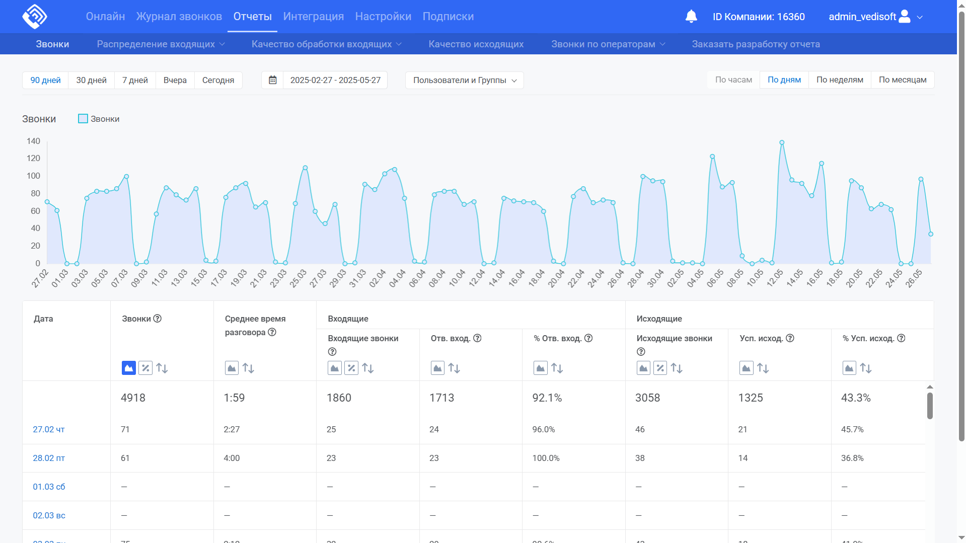 Отчёты. Входящие, исходящие, пропущенные, время, география, распределение звонков и многое другое. Наблюдайте онлайн.